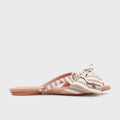 Flat en cuero con moño delantero de tela estampada, decorado con pequeños corales que aportan color, detalle y un aire completamente veraniego. El moño, de acabado suave y voluminoso, se convierte en el centro del diseño. El cuerpo del zapato mantiene una línea limpia y femenina, con plantilla y forro en cuero para comodidad y suela ligera ideal para el día a día. Perfecto para un look fresco, alegre y lleno de personalidad.