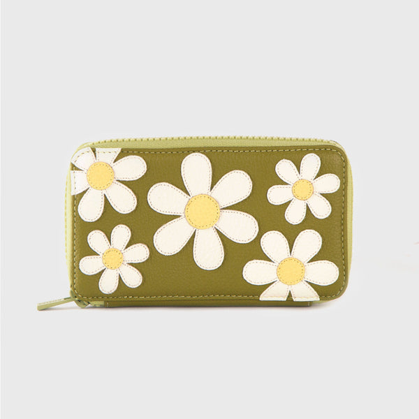 TE PRESENTAMOS EL MINI POUCH FREDA CACTUS. UN ESPECTACULAR MINI POUCH DE COLOR CACTUS CON FLORES DE CUERO.