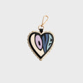 Heart-shaped charm in black leather with the word "LOVE" engraved on it. Includes gold-tone hardware for attaching to handbags. Modern and elegant, it conveys style with a message.
