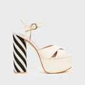 On our Retro Moonshine planet, discover our Gaela Platform with a circular toe that will stylize your outfits. This platform is made of leather with the bone and black colors that stand out on this planet. This perfect platform measures 5 cm and the heel 14 cm, perfect to accompany you on your special events. On the ankle you will find a strap with a circular buckle that will help you adjust it to your preference.