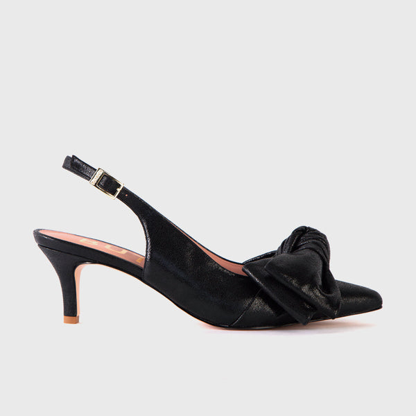 We present to you Gianna Midi Slingback in a black metallic leather. This midi has a 5 cm heel perfect for spending the night partying and dancing. You can adjust it at the ankle to your liking. At the top you will find a perfect bow that will stylize your entire outfit.