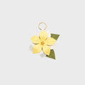Charm en forma de flor en cuero color amarillo. Con herraje metálico dorado, perfecto para personalizar bolsos o llaves. Sofisticado y versátil, ideal para elevar cualquier look.