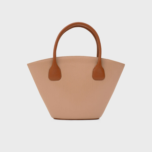 Trapeze Bag en cuero en arena con diseño estructurado. Viene con asas cortas y correa larga regulable en cuero. Cierre imantado, forro interior en tela y un bolsillo interior. Atemporal y práctico, pensado para acompañar la rutina diaria.