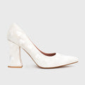 Nisha Pump Bride is made of velvet material and has hearts woven around the entire pump. The heel size is 9 cm, perfect for dancing the night away. On the insole you can find the name of the collection "Bride" and the brand in gold, on top of the leather.