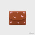 A compact brown wallet adorned with delicate butterflies, symbolizing freedom and transformation. Its size is perfect for carrying essentials. Inside, it features the exclusive Bambi collection print, full of charming details.