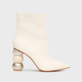 Botín en cuero color hueso con una silueta limpia y refinada. Su taco de 9 cm con diseño escultórico se convierte en el detalle protagonista del modelo. La combinación de distintas texturas de cuero aporta dimensión y sofisticación. Un diseño elegante y contemporáneo que destaca por su originalidad.
