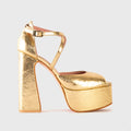Introducing our favourite platform, Biela. Made from gold metallic leather, this platform is 5cm high and has a 14cm heel, perfect for dancing all night long. You can adjust the shoe to your liking at the ankle.