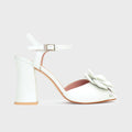 The Fernanda Pump Bride features a flower on the front of the shoe. Its 9cm heel and ankle strap ensure comfort and support without sacrificing elegance. A style designed for brides who dream big and want to shine.